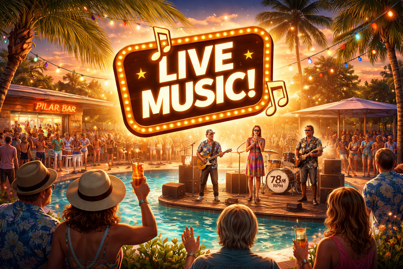 🎶 Poolside Grooves & Good Times 🌴 Step back in time and turn up the fun as we enjoy classic hits from the 50s, 60s, 70s — and beyond!Kick back